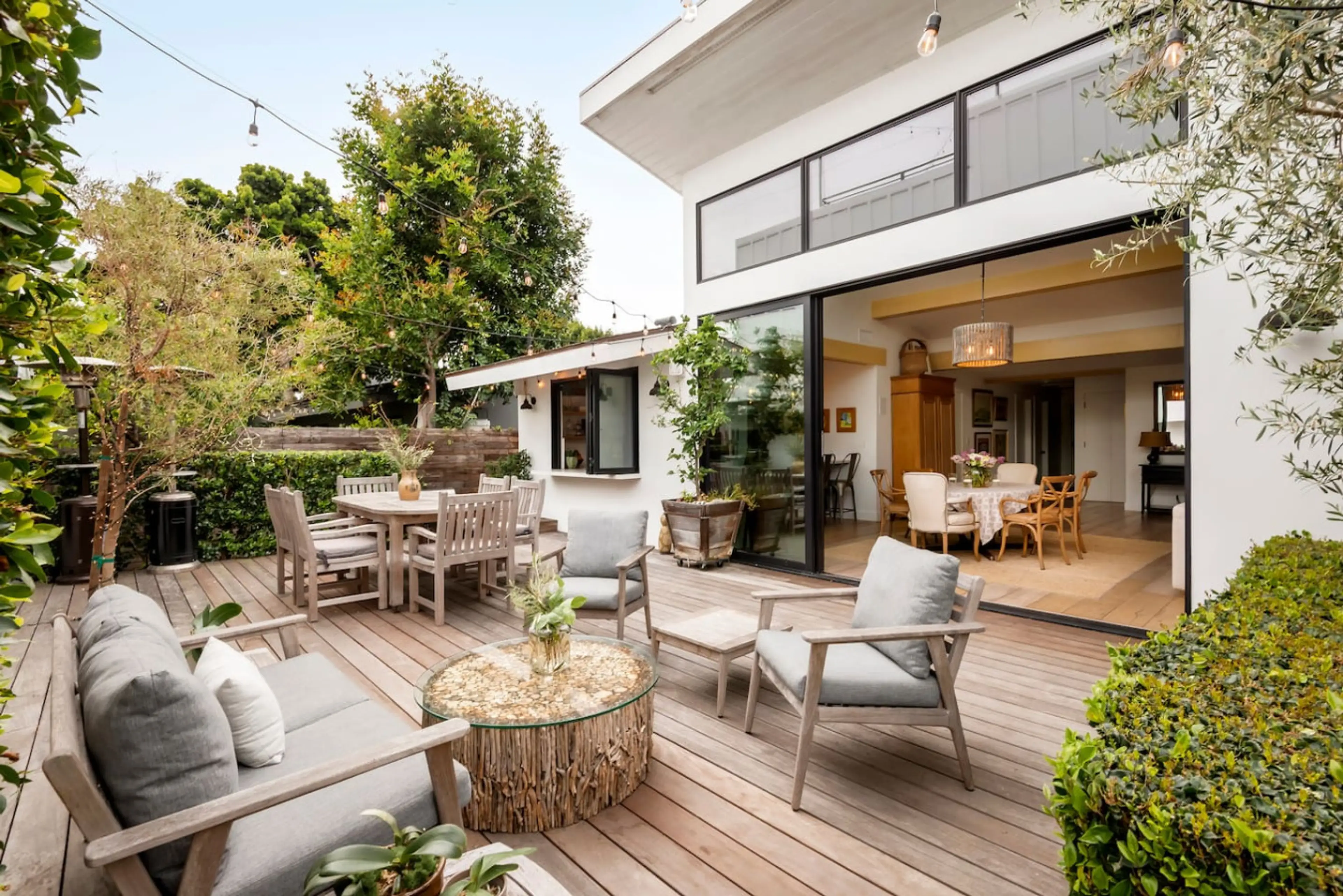 This three-bedroom Venice home is a private monthly retreat on Rose Ave, just blocks from the beach. Each bedroom has its own ensuite bathroom. The open layout features high ceilings, a well-equipped kitchen, dining for six, and large windows that connect to a landscaped backyard with outdoor dining...