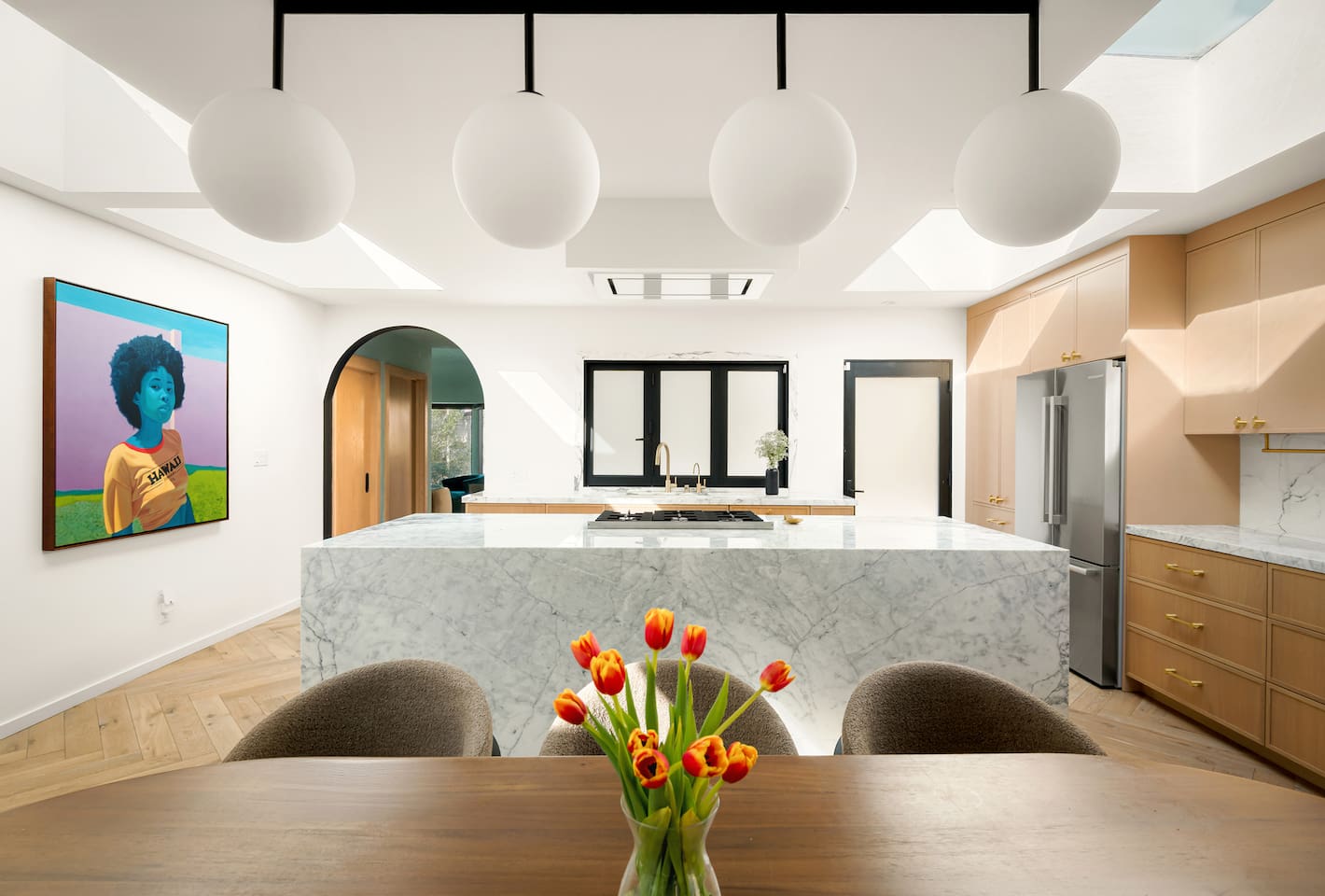 A well-designed three-bedroom home in Leimert Park with a private pool, spa, and skylit open floor plan. The marble kitchen, curated artwork, and indoor-outdoor flow give the home a considered, personal quality. Three full bathrooms, central AC, in-unit laundry, and driveway parking for up to three ...